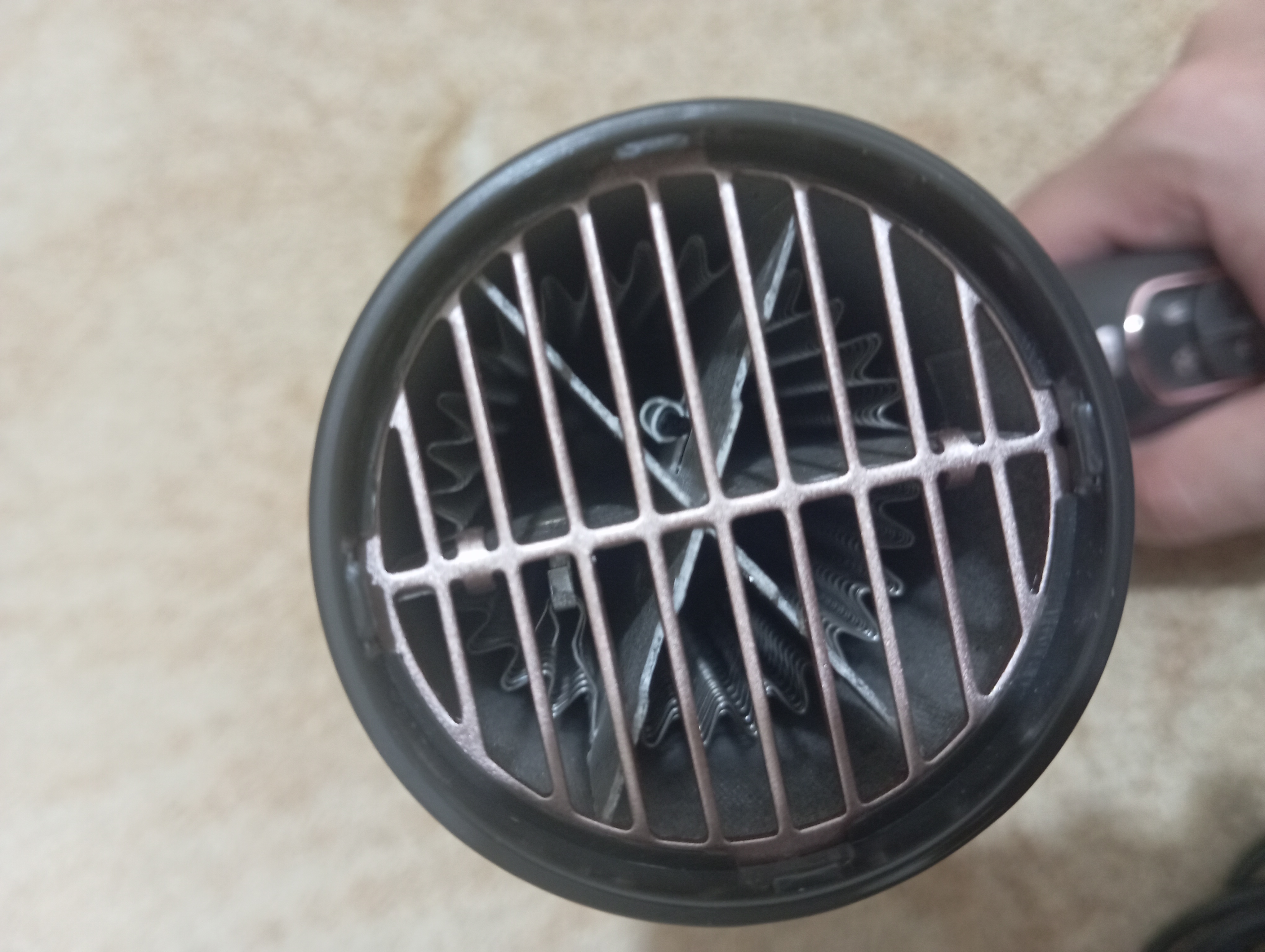 برای حفظ حداکثر عملکرد محصول، تمیز کردن دریچه ورودی هوا در پشت سشوار بسیار مهم است. برای جدا کردن دریچه ورودی هوا، حلقه نگهدارنده دریچه ورودی هوا را با دست خود بگیرید و آن را خلاف جهت عقربههای ساعت بچرخانید تا قفل شود. آن را از سشوار جدا کنید. اکنون میتوانید آن را با یک برس نرم یا جاروبرقی تمیز کنید. پس از تمیز کردن، حلقه نگهدارنده دریچه ورودی هوا را بگیرید و آن را طوری قرار دهید که گیرههای روی حلقه با شیارهای کنار سشوار همتراز باشند. برای قفل کردن، حلقه نگهدارنده دریچه ورودی هوا را در جهت عقربههای ساعت بچرخانید. قسمت بیرونی سشوار را میتوان با یک پارچه مرطوب تمیز کرد