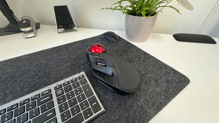 ماوس بی‌سیم ۲.۴ گیگاهرتز، USB، کنترل با انگشت اشاره، ۸ دکمه قابل تنظیم، گوی ELECOM HUGE زیردستی نرم و بزرگ، گوی ۵۲ میلی‌متری، ویندوز، مک (M-HT1DRBK)