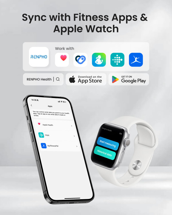 ترازو هوشمند RENPHO مدل ES-WBE28 با قابلیت اندازه‌گیری BMI، چربی بدن، توده عضلانی، ترازوی هوشمند برای وزن بدن، ترازوی ترکیب بدن با وای‌فای و بلوتوث، قابل شارژ،