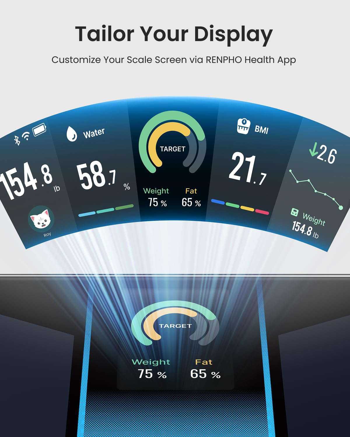 RENPHO Scale with BMI, Body Fat, Muscle Mass, Smart Scale for Body Weight, Wi-Fi & Bluetooth Body Composition Scale, Rechargeable, Elis Evo