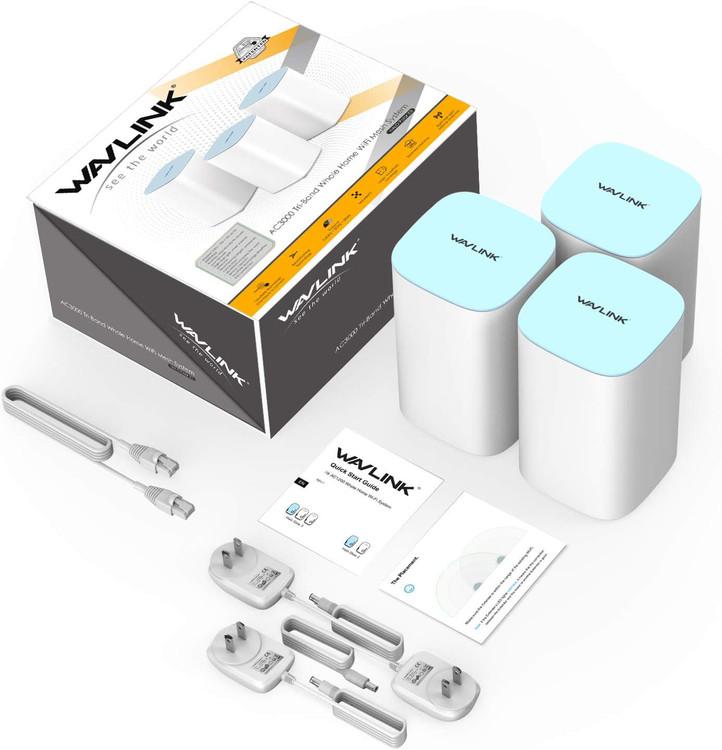 Wavlink Whole Home Mesh WiFi System, Tri-Band, 2.4GHz/400Mbps+5GHz/867Mbps+1733 Mbps, Up to 6,000 Sq.ft. Coverage, AC3000 WiFi Router and Two Extender, 3-Pack