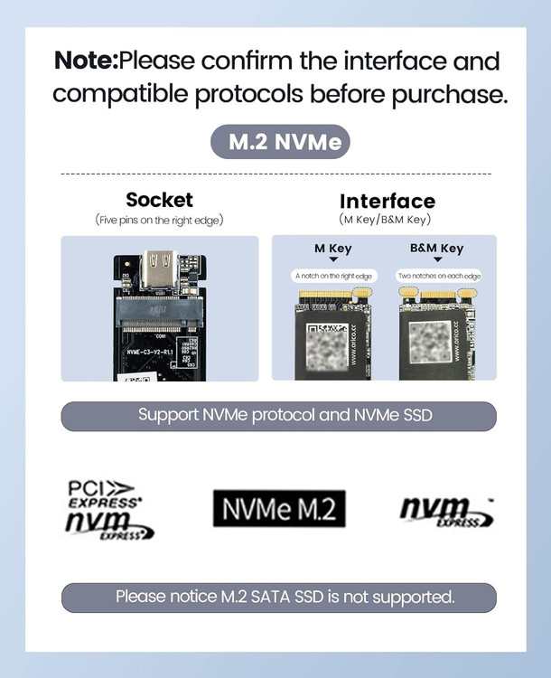 پشتیبانی از فرم فاکتور M.2 PCIe NVMe M key و B+M key در اندازه استاندارد 2280.